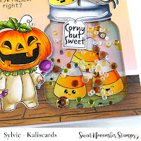 @sweetnovemberstamps have the sweetest and too cute to spook stamp sets for Halloween. I just love how cute that scene turned out with the new Corny but sweet stamp set and sequin mix which I combined with two other sets from last year. Those 3 work so well in this bright and fun shaker card.